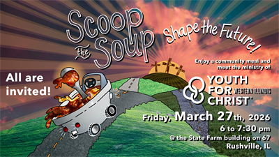 Scoop the Soup. Shape the Future! Enjoy a community meal and meet the ministry of Youth for Christ Western Illinois. All are invited.